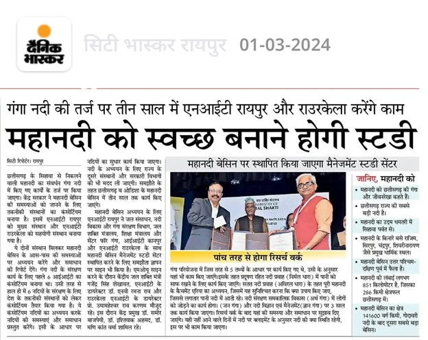 महानदी बेसिन पर तीन वर्ष अध्ययन करेंगी रायपुर - राउरकेला एनआइटी