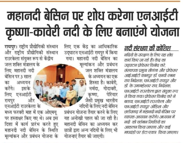 महानदी बेसिन पर तीन वर्ष अध्ययन करेंगी रायपुर - राउरकेला एनआइटी