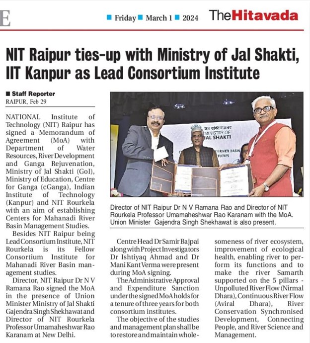 NIT Raipur ties up with Ministry of Jal Shakti and IIT Kanpur